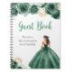 Este livro de hóspedes da quinceanera apresenta uma bela princesa num vestido de bola verde-escura com arranjos florais. Isto é perfeito para uma festa de aniversário de quinceanera.