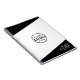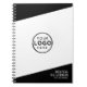 Este elegante caderno apresenta acentos angulados pretos e ousados na parte superior e inferior para um visual moderno e sofisticado. O logotipo da sua empresa fica visível no centro da capa frontal, enquanto as linhas de texto personalizáveis ao longo da parte inferior podem incluir seu nome e cargo, nome comercial e slogan, ou quaisquer detalhes que você escolher. Perfeito para reuniões, anotações ou uso corporativo, este caderno combina estilo e profissionalismo com texto e layout totalmente editáveis.