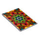 Caderno Espiral Psicodélico Flor de Hippie Verde Vermelho e Laranj