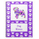 Caderno Espiral Pug Cujo Cachorro Silhute Paw Purple PY&B