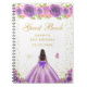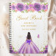 Este elegante e glamouroso livro de hóspedes de festa de aniversário apresenta uma bela princesa com cabelo escuro e pele escura num vestido de bola roxo. O texto combina o script manuscrito e as fontes sans serif modernas para um aspecto elegante e sofisticado. Os arranjos florais, borboletas e confete de ouro criam a mistura perfeita de rústicos e quicos. Gráficos por www.etsy.com/uk/shop/SunflowerDayLove