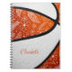 Este lindo notebook temático de basquete apresenta a imagem realista de uma basquete abstratamente sobredimensionada que recolheu painéis brancos e laranja alternados com delicadas flores de rabisco desenhadas à mão, penas e paisagens padronizadas nos painéis laranja do basquete - personalizar com o nome do atleta - por katz_d_zynes