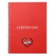 Este notebook vermelho personalizável apresenta um coração em quadrinhos decorado com o nome "Rachel". Você pode personalizar o texto padrão. Este é um presente excelente de volta à escola.
