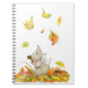 Caderno Espiral Rato fofo e folhas amarelo-laranja caindo
