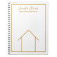Este moderno caderno de corretores é simples e sutil com o seu monograma e nome de empresa. Apresenta um desenho de ouro minimalista e branco de uma casa. Mantenha suas notas de lista e nomes de comprador de casa com você o tempo todo com este diário de escrevendo contemporâneo.