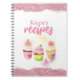 Recebe Cupcakes cor-de-rosa brilhantes Notebook personalizado Fundo cor-de-rosa Três Cupcakes com flores