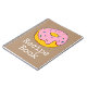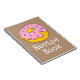 Arte de comida com ilustração desenhada à mão de uma rosquinha de gelo cor-de-rosa. Design de comida de para um livro de receitas.