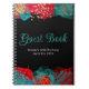 Caderno Espiral Red and Teal Blue Alcohol Ink Birthday Guest Book