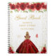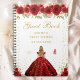 Este elegante e glamouroso e doce livro de hóspedes apresenta uma bela princesa com cabelo louro e pele clara num vestido vermelho. O texto combina o script manuscrito e as fontes sans serif modernas para um aspecto elegante e sofisticado. Os arranjos florais, borboletas e confete de ouro criam a mistura perfeita de rústicos e quicos. Gráficos por www.etsy.com/uk/shop/SunflowerDayLove