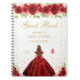 Este elegante e glamouroso e doce livro de hóspedes apresenta uma bela princesa com cabelo vermelho castanho e pele clara em um vestido de bola vermelha. O texto combina o script manuscrito e as fontes sans serif modernas para um aspecto elegante e sofisticado. Os arranjos florais, borboletas e confete de ouro criam a mistura perfeita de rústicos e quicos. Gráficos por www.etsy.com/uk/shop/SunflowerDayLove