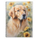 Caderno Espiral Retriever e girassol do Ouro de pintura a aquarela