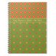 Um computador portátil espiral ou Diário para personalizar, com padrões diferentes de Retro Poppies num fundo verde, agrupados com Bolinhas. De uma colagem de papel pintada manualmente por Judy Adamson, este design colorido faz parte da coleção 'Campos de Papanicolada' Posh & Painterly.