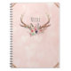 Notebook rosa Blush Pink Floral Deer Antlers Boho Chic. Personalize a frente com ou sem texto.