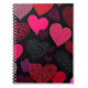 "Paixão em tons" é um notebook cativante que abraça a essência do amor e da emoção através de uma paleta colorida cuidadosamente curada de preto, rosa-quente, rosa-mole e vermelho-vivo.