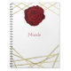 Notebook de Diário Personalizado com Glam Geométrico Floral de rosa vermelha e Linhas Douradas. Personalize a frente com ou sem texto.