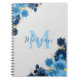 Caderno Espiral Rosas Azuis Com Script Luminter Dourado Monograma