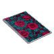 Padrão de vetor desenhado à mão com rosas vermelhas com folhas azuis