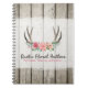 Caderno Espiral Rosas & madeira florais rústicos do chique dos