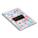 Belo notebook personalizável com delicadas rosas cor-de-rosa e flores azuis, padrão aquoso.