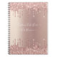 Caderno Espiral Rose Gold Blush Glitter Sparkle Drips Custom Text