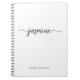 Caderno personalizado minimalista feminino simples e limpo com monograma de nome branco. Este design apresenta seu primeiro nome em uma linda tipografia de letra manuscrita com cauda ornamentada, com um modelo de nome completo em fundo branco. São fáceis de personalizar e podem ser usados como Livro de Receitas, Diário, Planejador, Caderno de Desenho, Revista e mais. Também é um presente feminino elegante para aniversário, dia das mães, chá de noiva, casamento, festa de 16 anos, e chá de bebê, negócios, formatura, volta às aulas, trabalho profissional e para quem gosta de coisas simples e limpas.