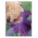 Um notebook de tamanho pessoal, encadernado em espiral, que apresenta a foto do cobrir de uma Íris de dois tons com floração púrpura e cor de pêssego junto com a barba laranja. Um design floral adorável! Use como diário ou para fazer anotações. Personalize adicionando nome, etc.