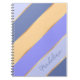 Caderno divertido para mulheres ou meninas. Com belo padrão contemporâneo de listras azuis, lilás, amarelo claro e violeta pastel. Com espaço para personalizar com nome, monograma ou iniciais de sua escolha. Desenho moderno e caprichoso para a fashionista artística elegante ou diva da moda, quem segue as últimas tendências ou simplesmente ama o estilo de arte listrado retrô.