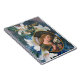 Rua. Gabriel ("Força de Deus") é mais conhecido como o Arcanjo da Anunciação trazendo as Boas Notícias à Virgem Maria que Deus a escolheu como mãe de Seu Filho Jesus (Luke 1:26-45). + Aqui, Rua. Gabriel está sumptuamente vestido em tecidos de vermelho, azul e verde com trims de ouro avermelhado. Cabeça curvada, olhos retos — na mão esquerda, ele segura um spray de lírios que simboliza a pureza de Mary; e, com a mão direita, ele faz um gesto de fala. + Ruas. Gabriel é o patrono de mensageiros, funcionários postais, colecionadores de selos e trabalhadores de telecomunicações. + Banquete (junta com SS. Michael e Rafael (os Arcanjos): 29 de setembro + Crédito Imagem (M 035): Imagem antiga de Ruas. Gabriel com Lírios, intitulado O Anjo da Anunciação do pintor Barroco Italiano Carlo Dolci (1616-1686), Galleria Palatina, Palazzo Pitti, Florença, c. 1650, de um cartão postal originalmente publicado em cromolithografia por Stengel, Dresden, Alemanha, n.º 29333, c. 1900, da coleção privada de efemérsia religiosa do designer. + Image Credit (Background): Páscoa branca com Flores Azuis, a partir de um antigo cartão postal originalmente publicado pela Visto Rev., Milão, Itália, início do século 20, a partir da coleção privada de efemera do designer.