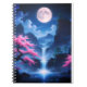 Caderno Espiral Sakora tree-Moonlit Waterfall with Cherr-pink