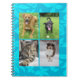 School notebook with four photo templates on the front. Blue flowers art, a hand-drawn pattern design, is the background for your child's favorite photos. Make school a little more fun when he, or she, can see familiar pictures of their family, playmates, or furry friends.