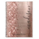 Antebook espiral personalizado elegante, moderno, brilhante rosa ouro-ouro, monograma metálico com assinatura. Esta design feminina com um fundo metálico esfregado em rosa dourado, borda de rosa dourada e um enorme nome de assinatura ou modelo de texto monograma, com letra de mão. O nome está escrito em um estilo de letra sutil, muito bonito e liso, com letra maiúscula e escrita. presente feminina excelente para raparigas e mulheres para a escola, escritório doméstico, negócios, aniversário, chá de panela, casamento, festa de aniversário doce 16, ou qualquer pessoa que ama o estilo feminino bonito moderno.