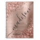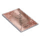 Um moderno e giro rosa dourado monograma metálico monograma metálico com assinatura caderno espiral personalizado personalizado. Esta design feminina com um fundo metálico esfregado, rosa dourado esfarrapado, uma borda brilhante rosa-dourada e um enorme nome de assinatura escrevendo de mão ou modelo de texto monograma. O nome está escrito em um estilo de letra sutil, muito bonito e liso, com letra maiúscula e escrita. presente feminina excelente para raparigas e mulheres na escola, no escritório doméstico, nos negócios, no aniversário, no casamento, no chá de panela, na doce festa de aniversário 16, ou para qualquer pessoa que ama o estilo feminino bonito moderno.