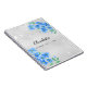 Um fundo metálico prateado falsa, com flores azuis que me esqueçam. Poeira de brilho. Personalize e adicione um nome e título.
