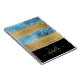 Notebook azul-metálico moderno e leve em pinceladas com ouro, brilho, preto e adornado com seu monograma de script, primeiro nome e inicial.