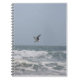 um caderno com fotografia de uma gaivota que captura um peixe para fora do oceano Atlântico.