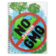 Uma preocupação global para a ambientalista conservacionista orgânica sustentável, ecológica, grande preocupada e consciente da grande preocupação com a mensagem NO OGM e um globo com a América do Norte e o topo da América do Sul com árvores, aves, pinguins, ondas oceânicas, pântanos e um grande sinal vermelho NO