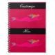Caderno Espiral sereia rosa-natação vermelha/preta