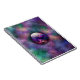 Padrões fractais vívidos e brilhantes circulam como uma tempestade elétrica de cor arco-íris com raios azuis, verdes, roxos, cor-de-rosa e laranja. Um ninho escuro, mas colorido, no meio.