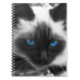 Foto preta e branca de um lindo gato siamês com olhos azuis gelados. Um presente de excelente para você ou para o amante de gatos em sua vida.