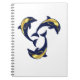 Caderno Espiral Silhueta de ouro azul marinho de golfinho náutico