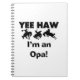 Yee Haw Eu sou uma camiseta Opa, canecas, cartões, adesivos, botões de anúncio, keepsakes opa, e outros presentes opa com um cavalo de entrelaçamento e design de texto preto ou branco. Estes itens de roupa de opa e presentes são perfeitos para avós pela primeira vez ou opas temperadas de uma nova chegada!