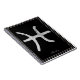 Símbolo de aniversário astrologia zodíaco de Peixes de prata martelados estilizados em uma fina linha dupla de linha prateada desenhada à mão. Este bloco de anotações ou revista de sonho ou painel escrevendo tem texto de Peixes em um roteiro fino, que pode ser personalizado para contar sua própria história.