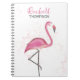 Este design apresenta um flamingo rosa com um nome personalizado, para qualquer mulher profissional ou feminina cor-de-rosa, um estilo moderno e elegante tipo de letra de caligrafia, um divertido e caprichoso estilo preppy, para vida tropical de praia e costa, um caderno para escritório ou escola, personalizar o nome, uma ilustração de natureza e vida selvagem em aquarela, um simples e elegante estilo divertido