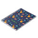 Um padrão divertido e moderno do sistema solar com ilustrações coloridas de planetas, estrelas e sol contra um fundo azul escuro. Este design pode ser personalizado com o nome do bebê ou monogramado com iniciais. Um ótimo presente de chás de bebê para mães novas ou futuras.