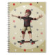 Renderização digital em 3D de um rapaz num skate sobre um fundo de estrelas
