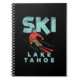 Gráfico de esqui que diz: Lago Ski Tahoe. Design de esqui engraçado para as próximas férias de esqui nas montanhas no inverno.