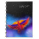 Fiery phonix voando pelo espaço em uma nuvem nebulosa azul e roxa num céu noturno estrelado. Um aglomerado de estrelas espumante forma a constelação de fênix. ♡ Idyllfire