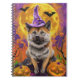 Caderno Espiral Spooky Akita Halloween Witch e Pumpkin