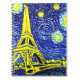 Esta bela design mostra a cidade de Paris France e a Torre Eiffel num estilo de pintura da Noite Estrelada de Van Gogh.