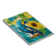 Das Bild präsentiert einen prächtigen Ara mit tiefblauem Gefieder und einem auffälligen gelben Schnabel, der majestätisch auf einem Ast thront. Begleitet von einer leuchtenden Sonnenblume und tropischen Blättern, strahlt es Wärme und exotische Eleganz aus. Die dynamischen Farben und Muster wecken ein Gefühl von Freiheit und natürlicher Schönheit.